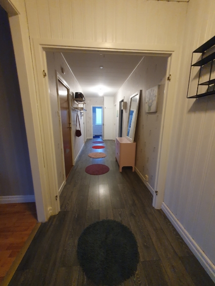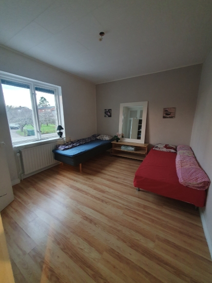 En hel (Rymlig lägenhet) 110 kvm för ER själva. Boendet belägen i väldigt lugnt område i centrala Finspång, i närheten till matbutiker, andra förbindelser, men även till naturen och stranden. 30 minuter bilväg till Norrköping, 35 minuter till Djurparken Kolmården. En trädgård med äppelträd och en fin naturtomt på fram och baksidan. Nytt fräscht kök med allt som behövs för matlagning. En mysig matsal. 4 sovrum, 8 sovplatser, 2 badrum och två balkonger.
