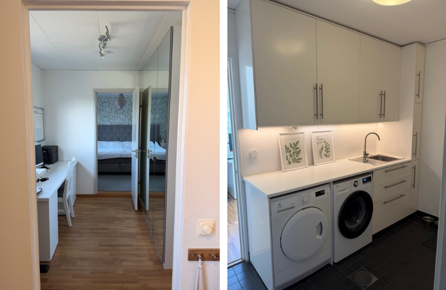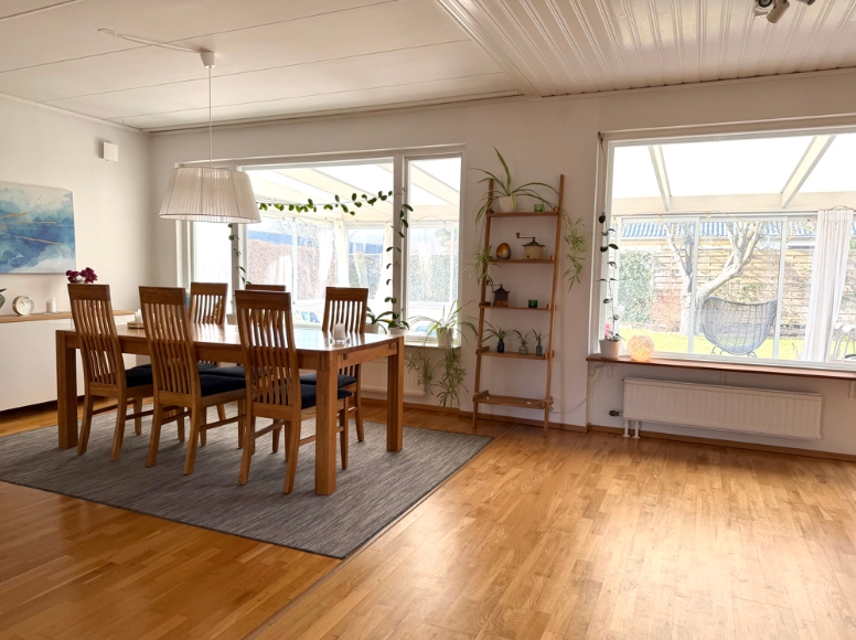 For English, see below. I trivsamma och populära Lomma finns detta havsnära kedjehus till uthyrning tills vidare (helst minst 1-2 år). Huset är 135 m2 med stort uterum och underbar trädgård med fruktträd och bärbuskar. Huset har 3 sovrum, 1 mindre arbetsrum, stort vardagsrum och kök i öppen planlösning samt tvättstuga. Ett badrum med dusch samt en gäst-WC. Gott om plats och inbyggd förvaring. Huset ligger på en hörntomt (618 m2), med trädgården i söder- och västerläge med stort trädäck som har sol från morgon till kväll. Trädgården är insynsskyddad (så snart avenbokshäcken har slagit ut på våren!), barnvänlig och har möjlighet till odling i ett flertal pallkragar. I trädgården finns äppelträd, plommon, fikon, vindruvor, krusbär, rabarber m.m. Huset ligger 1 km från havet, gångavstånd till vackra Alnarpsparken och med närhet till många lekplatser och grönområden. Lomma har numera tåg till Malmö (7 minuter) och ett levande centrum med restauranger, flera livsmedelsbutiker, gym, systembolag, bank, apotek m.m. Regelbunden busstrafik och bra cykelvägar till Malmö och Lund. Kök: Öppet och ljust med gott om förvaring, utrustat med ugn, spis, diskmaskin och kyl samt en inbyggd frys i fullhöjd. Öppen planlösning mot stort socialt vardagsrum, med utgång till uterummet varifrån man når trädäcket och trädgården. Sovrum 1: Vita väggar och en fondvägg (färgglad tapet), två inbyggda garderober. Sovrum 2: Vita väggar kombinerat med blommig silvrig tapet, tre inbyggda garderober. Sovrum 3: Vita väggar och en fondvägg (blommig), två inbyggda garderober. Arbetsrum: Ljust genomgångsrum mellan kök och sovrum, med utrymme för två bra arbetsplatser. Två dubbla spegelgarderober från IKEA med trevlig inredning. Tvättstuga: Utrustad med tvättmaskin och torktumlare, gott om förvaring. Utgång till garage. Badrum: Vitt kakel, grå klinkers, dubbelhandfat och stort spegelskåp, toalett, dusch. Gäst-WC med toalett och handfat. Parkering: Garage med plats för en bil, plats för bil på garageuppfart samt på gatan utanför huset. Stor gästparkering finns på husets gavelsida. Visning på plats sker efter initialt digitalt möte. Huset kan hyras omöblerat, delvis eller fullt möblerat enligt överenskommelse (dock inte exakt de möbler som syns på bilderna). Ingen rökning. Ev husdjur måste godkännas i förväg. Vi vill hyra ut tills vidare, minst ett år, gärna längre. Hyran inkluderar fastighetsskatt och parkering, men är i övrigt kallhyra, dvs inga förbrukningskostnader ingår i hyran. Rörliga kostnader tillkommer för uppvärmning (fjärrvärme), hushållsel, V/A och sophämtning samt ev. bredband/TV. Hyresgästen ansvarar för att ha hemförsäkring (vi som fastighetsägare har villaförsäkring). Fiber finns i huset. Som boende tar man hand om all trädgårdsskötsel, men vi kan vara behjälpliga någon gång per säsong om så önskas. Lugnt och tryggt område, vänliga grannar, flera barnfamiljer på gatan och nära till skolor och förskolor. Skriv och berätta om vilka ni är, så hör vi av oss! English: In the pleasant and popular coastal town of Lomma, this well-located terraced house is available for rent until further notice (preferably for at least 1–2 years). The house is 135 m² and features a large conservatory and a beautiful garden with fruit trees and berry bushes. The house includes three bedrooms, a smaller office, a spacious living room and kitchen in an open-plan layout, as well as a laundry room. There is one bathroom with a shower and a separate guest WC. The house offers generous space and built-in storage. The property sits on a corner lot (618 m²), with the garden facing south and west. There is a large wooden deck that enjoys sun from morning until evening. The garden is private and sheltered (especially once the hornbeam hedge has grown in during spring), child-friendly, and offers space for gardening in several raised beds. In the garden there are apple trees, plums, figs, grapes, gooseberries, rhubarb and more. The house is located 1 km from the sea, within walking distance of the beautiful Alnarp Park, and close to several playgrounds and green areas. Lomma has a train connection to Malmö (7 minutes) and a lively town center with restaurants, several grocery stores, gyms, Systembolaget, bank, pharmacy and more. There are also regular bus connections and good cycling paths to both Malmö and Lund. The kitchen is bright and open with plenty of storage and is equipped with an oven, stovetop, dishwasher and refrigerator as well as a built-in full-height freezer. It is connected in an open-plan layout to a large and social living room with access to the conservatory, which leads out to the wooden deck and garden. Bedroom 1 has white walls and one accent wall with colorful wallpaper, as well as two built-in wardrobes. Bedroom 2 has white walls combined with silver floral wallpaper and three built-in wardrobes. Bedroom 3 has white walls and a floral accent wall, as well as two built-in wardrobes. The office is a bright walk-through room between the kitchen and one of the bedrooms with space for two comfortable workstations. It also has two double mirrored wardrobes from IKEA with fitted interiors. The laundry room is equipped with a washing machine and dryer and has good storage space, as well as access to the garage. The bathroom has white wall tiles, gray floor tiles, double sinks, a large mirrored cabinet, toilet and shower. There is also a separate guest WC with toilet and sink. There is a garage with space for one car, as well as parking on the driveway and on the street outside the house. A large guest parking area is located next to the property. Viewings in person will take place after an initial digital meeting. The house can be rented unfurnished, partially furnished, or fully furnished by agreement (though not with the exact furniture shown in the photos). Pets must be approved in adv
