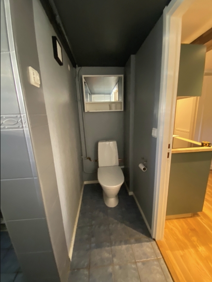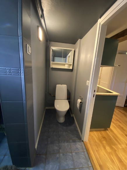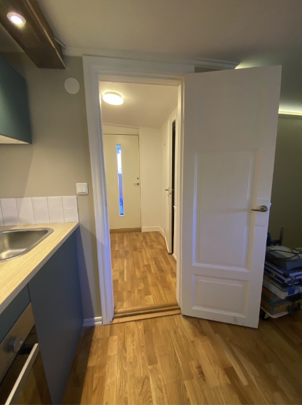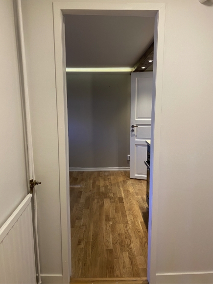 Rum med pentry, stor hall med ingång direkt från tomten, stor garderob/klädkammare, stort utrymme med wc, dusch och tvättmaskin med förvaring. Lägenheten ligger centralt i Täby Kyrkby med närhet till Tåg, buss och grönområden.