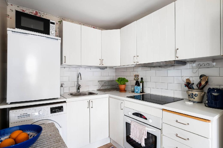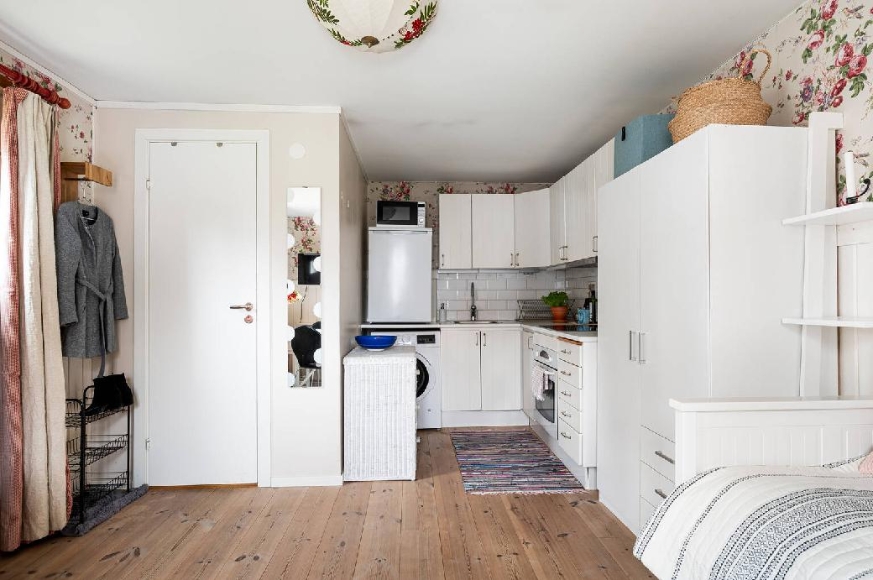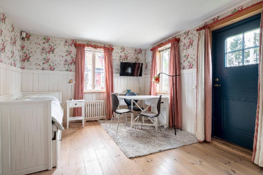 Fullt utrustat gästhus på tomten på Enskedefältet. Goda kommunikationer in till stan, från närmaste tunnelbanestation är man framme på T-Centralen på under 15 minuter. Sängen samt bordet på bilderna finns inte kvar, eventuell möblering kan diskuteras. Liten uteplats vid entrén. Egen ingång till tomten.