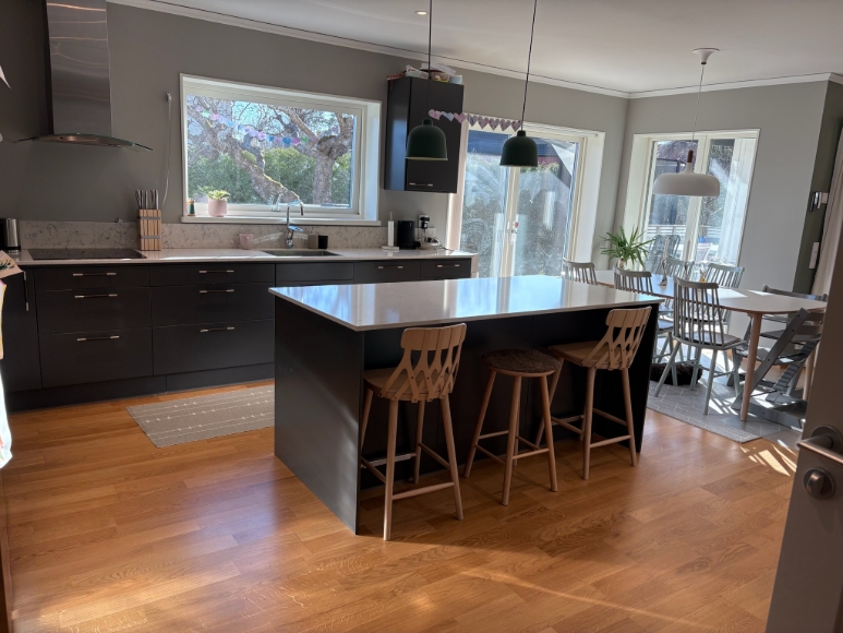 Välkommen till Kvarnåsvägen 9 i Österskär – ett modernt och trivsamt hem i fantastiskt havsnära område! Detta välplanerade hus om ca 179 kvm erbjuder gott om utrymme för familjeliv, umgänge och arbete hemifrån. Här bor du i ett lugnt och barnvänligt villaområde, nära både hav, natur och smidiga kommunikationer. Huset och planlösningen - Boarea: ca 179 kvm - 4 sovrum, varav 3 på övervåningen – perfekt för barnfamiljen - Öppen och social planlösning på entréplanet mellan kök och vardagsrum - Vardagsrum med öppet till nock som ger rymd och fint ljusinsläpp - Braskamin som skapar mysfaktor - Direkt access till altanen från både kök och vardagsrum – perfekt för sommarens middagar och umgänge - Flera härliga uteplatser som fångar solen under dagen - Framsida i söderläge Tomt - Härlig, lättskött trädgård med plats för lek, odling och sociala aktiviteter - Uppställningsplats för 2 bilar - Laddstolpe för elbil Läge och omgivning - Mycket barnvänligt område med lite trafik - Förskolor och skolor i närområdet - Nära både bryggor och badstrand – perfekt för den som uppskattar havet och ett aktivt friluftsliv - Närhet till Roslagsbanan som tar dig in till Stockholm på ca 35 minuter Österskär är ett fantastiskt område med kombinationen av skärgårdskänsla, natur och närhet till stan Detta är ett idealiskt boende för familjen som vill bo grönt, lugnt och havsnära med modern komfort och goda pendlingsmöjligheter. Kontakta oss gärna för mer information eller för att boka visning av huset på Kvarnåsvägen 9 i Österskär.