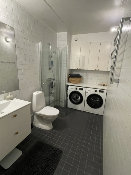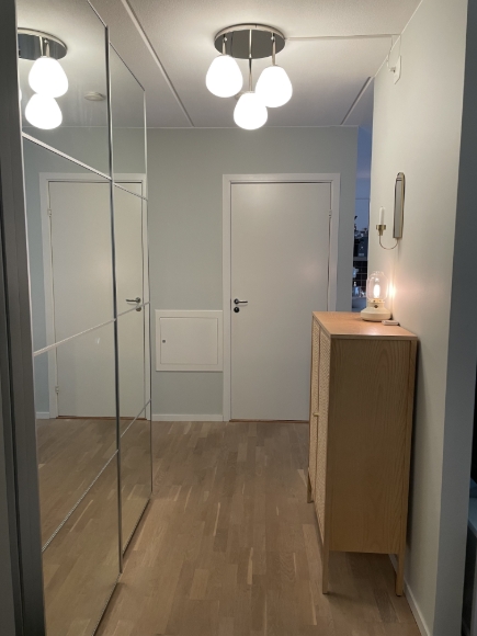 Lägenheten hyrs ut helt möblerad och erbjuder en öppen och luftig planlösning mellan kök och vardagsrum. Det stora sovrummet har gott om förvaring med rymliga garderober, mörkläggningsgardiner, en egen balkong samt ett praktiskt hemmakontor. Köket är fullt utrustat med generösa arbetsytor och alla köksredskap man kan behöva, inklusive en Moccamaster och en KitchenAid köksassistent. Badrummet är stort och bekvämt med tvättmaskin, torktumlare och handdukstork. I hallen finns ytterligare förvaring i form av en stor garderob. Som hyresgäst får du också tillgång till föreningens cykelrum och tvättstuga. I hyran ingår allt – även el och wifi – vilket gör boendet enkelt och bekvämt. Observera att hyresgästen behöver godkännas av föreningen.