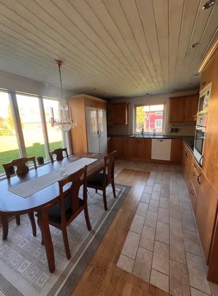 Enplanshus på landet med endast 10 km till centrum. Lite avskilt och lugnt. Huset är till försäljning så ev visningar kan förekomma framåt våren. Något möblerat. 4 parkeringsplatser. Stor tomt. Friggebod på gården med fiber utdraget. Stor tomt med närhet till skog och mark. Fina uteplatser och med uterum med kvällssol. Stort vardagsrum med full takhöjd 3.80. Stora härliga fönster. 5 km till förskola och skola 1-6. Buss för äldre barn in till stan.