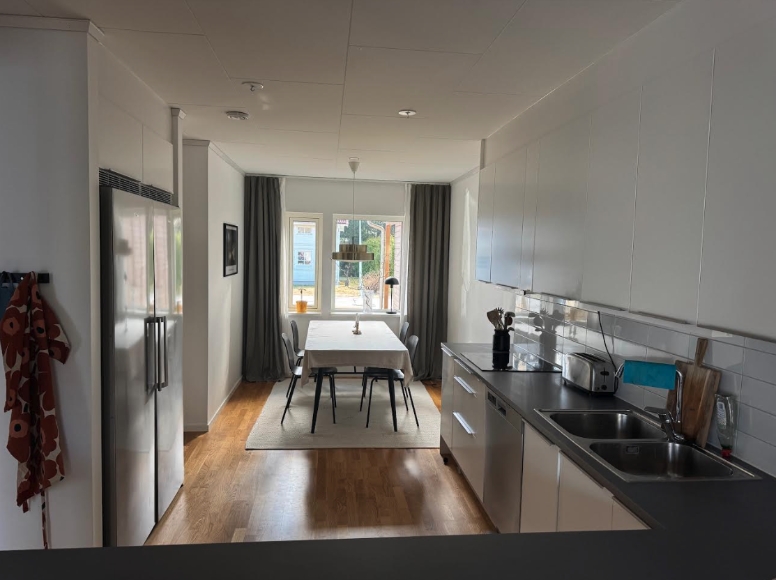 Radhus i Bredsand nära Mälaren – familjevänligt och rymligt boende Välkommen till ett trivsamt och familjevänligt område på Skonarvägen i Enköping – ett lugnt kvarter med närhet till både natur och stadens bekvämligheter. Här bor du i Bredsand, nära Mälarens vackra omgivningar, perfekta för promenader, bad och friluftsliv. I området finns flera förskolor och skolor samt god tillgång till service. Du har nära till livsmedelsbutiker, mindre närbutiker och andra vardagsbekvämligheter. Enköpings centrum nås enkelt och erbjuder ett brett utbud av shopping, restauranger och caféer. Kommunikationerna är smidiga med bra bussförbindelser och ett pendlarvänligt läge – du tar dig enkelt till både Västerås och Uppsala, samt vidare mot Stockholm. Bostaden är ett radhus med generösa ytor och erbjuder fyra rymliga sovrum, två helkaklade badrum med dusch och badkar, en separat tvättstuga samt en modern och social öppen planlösning som skapar en luftig och trivsam känsla. På tomten finns egen parkering med carport som ingår, vilket ger ett bekvämt och praktiskt boende. Här finns även ett kallförråd om cirka 10 kvm.