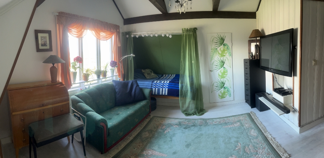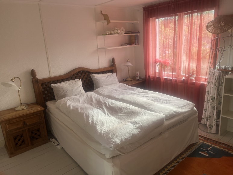 Litet hus med gammaldags charm, stor lummig trädgård med vidunderlig utsikt över Alingsås. Lugnt och fint område med härlig grannsämja. 12-15 min promenad till centrum och tåg. Nyinstallerad bergvärme.. Lagom till 2-3 personer. Bil finns tillgänglig till en viss summa/mil och månad. Uthyres endast dessa 6 månader 30/9-30/3, då vi är utomlands.