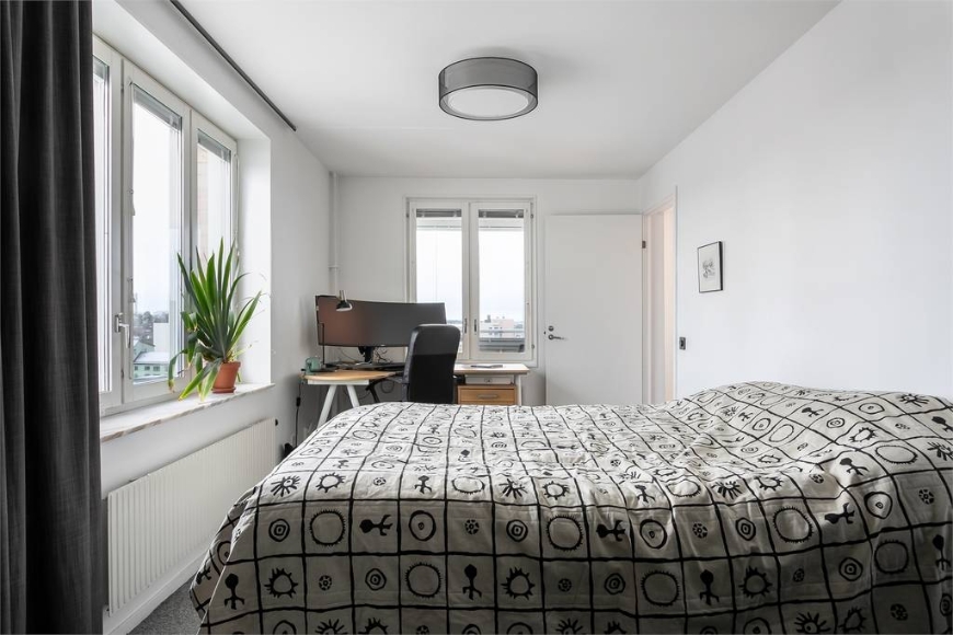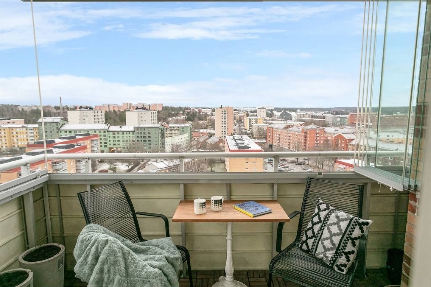 Våning på 14e våningen med fantastisk utsikt. Att det är högt läge gör att det inte är någon insyn så lägenheten känns privat. Lägenheten har även inglasad balkong. Ingång finns även direkt till Jakobsbergs centrum så man behöver inte gå ut för att gå och handla. Det är även nära till kommunikationer vid Jakobsbergs centrum med pendeltåg och Bussar (pendeltåget till Odenplan ta circa 15 minuter). Jag hyr ut bostaden då jag och hustrun köpt hus och kommer att flytta dit i slutet av året.