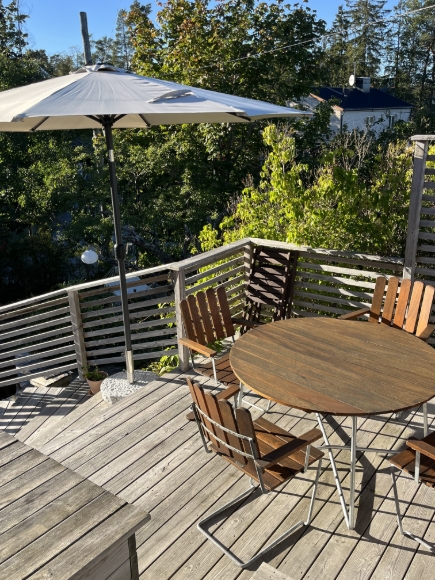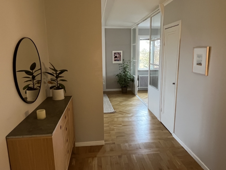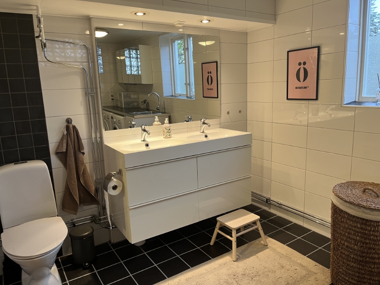 Vi hyr ut vårt fina hus i Stuvsta (mellan Älvsjö och Huddinge), fullt möblerat, under perioden 1 januari – 31 juli 2026. Perfekt för pendlare, med 8 minuters promenad till Stuvsta pendeltågsstation. Huset ligger högt upp och fritt, med utsikt. 170 kvadratmeter fördelat på två plan med 3–4 sovrum. Helkaklat badrum med dusch och en extra toalett. Fiskbensparkett i vardagsrummet, trägolv i andra rum och en fungerande öppen spis. Rum på övre plan: sovrum med dubbelsäng och inbyggd garderob, rymlig matsal med plats för 8–10 personer runt ett ekbord, välutrustat öppet kök, ljust vardagsrum med utgång till balkong och härlig utsikt, arbetsrum/gästrum samt gästtoalett. På mellanvåningen ligger huvudentrén med stora fönster, gott om plats för både avhängning av kläder och påklädning. På nedre våningen: allrum med projektor, ljudanläggning och filmduk samt en fungerande öppen spis; två sovrum med enkelsängar och utdragbara gästsängar; Badrum/tvättstuga med dusch och golvvärme. TV och internet (300 mb) via Telia fiber. Huset ligger högt upp med mycket dagsljus under dagen. Uteplats med parasoll vid uteserveringen. Plats för två bilar på uppfarten, gratis parkering på gatan utanför för gästerna. Gräsmatta för bollspel och annat roligt framför huset; Den bakre delen av tomten har en stenig kulle och sluttning, vilket ger en härlig utsikt. Stor studsmatta finns. Området är lummigt och lugnt, med en hastighetsbegränsning på 30 km/h på vägen utanför. Trevliga grannar och överlag ett mycket bra område att bo i. Några hundra meter bort ligger Älvsjöskogens naturreservat och motionsspår med belysning (2–4 km). Vid Långsjön, på samma avstånd, finns badplats och restaurang. På vintern plogas en skridskobana på sjön. Närmaste station är Stuvsta pendeltågsstation som kan nås på 8 minuter till fots eller 3 minuter med cykel. Resan till Södermalm tar 10 minuter, Stockholm City/Central nås på 13 minuter. Pendeltågen söderut går till Södertälje och Tumba. Det finns flera bra skolor och förskolor i området. I Stuvsta centrum, 10 minuters promenad bort, finns ICA, apotek, vårdcentral, bageri, blomsteraffär, frisörer och flera take-away-matställen. 2 km bort finns Stora Coop och bensinstationer m.m. I hyran ingår kallvatten, sophämtning, internet, TV och parkering på uppfarten. El- och nätkostnader tillkommer och omfattar uppvärmning, varmvattenproduktion och hushållsel. I genomsnitt har detta kostat oss ca 2 700 kr/månad. Ansvarsförsäkring och hemförsäkring för personlig egendom är hyresgästens ansvar.