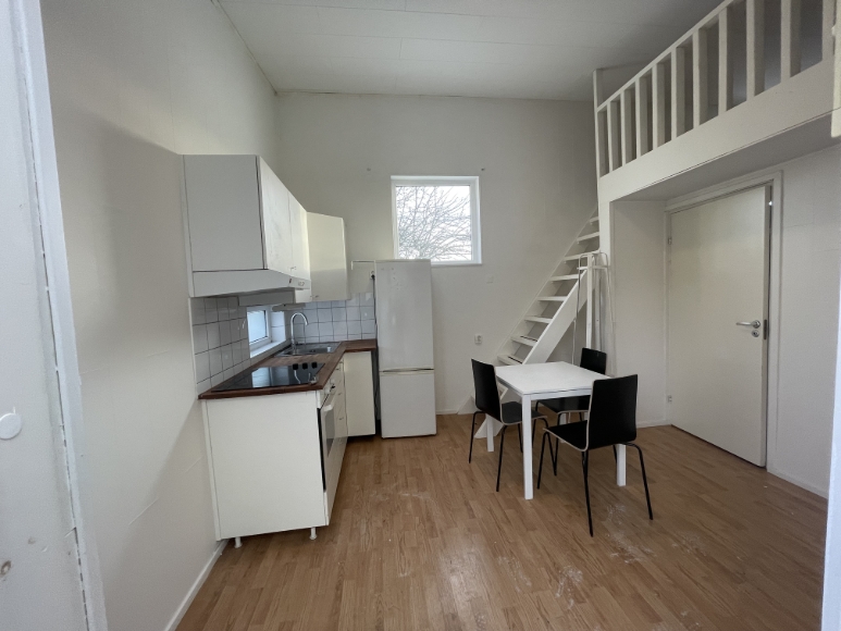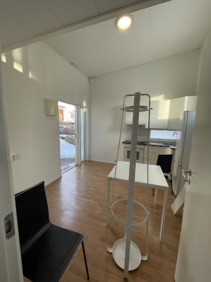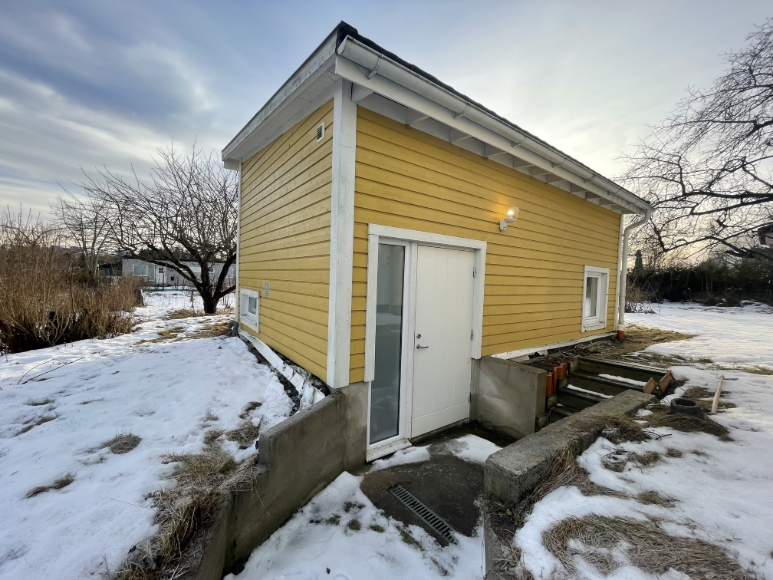 Friggebod på 25 kvm med sovloft, badrum, kök och uteplats samt gratis parkering och fri tillgång till tomten på 1640 kvm. Du får eget utrymme utan störande gäster. • Storlek: ca 25 m² + loft • Egen ingång • Tvättmaskin, kök och badrum ingår • Gratis parkering på infarten til tomten
