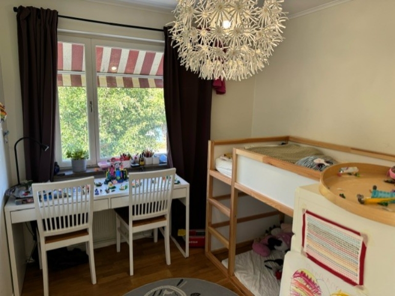 Mysigt, välplanerat gavelradhus med 4 sovrum, 2 badrum, vardagsrum, kök, fina uteplatser både på fram och baksidan av huset. Nära centrum med mataffärer, pendeltåg och bussar samt nära naturen. Kan möbleras mot tilläggskostnad.