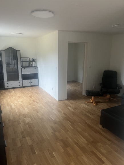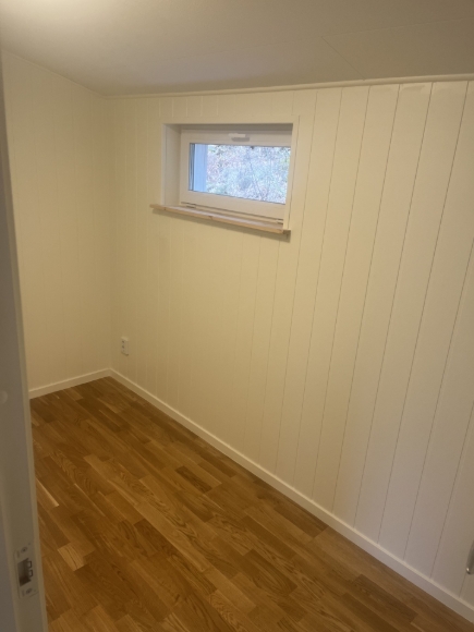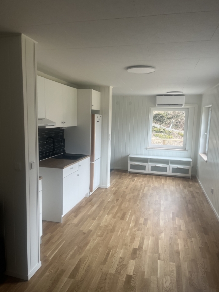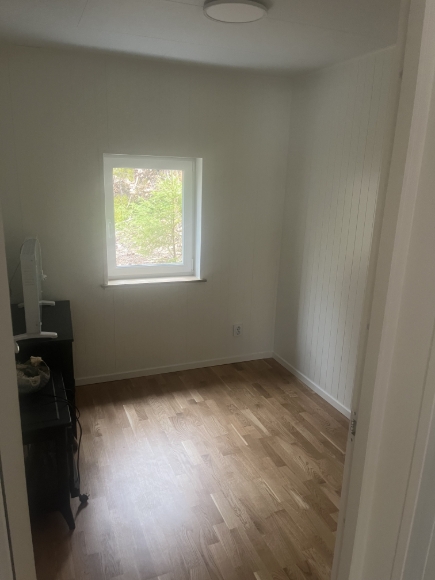 Huset är helt nyrenoverat invändigt. Allt är nytt – från golv, isolering och fönster till tak. Ingen har bott i huset sedan renoveringen. Det ligger på en fin plats i ett lugnt område, omgivet av grönska, bara några minuter från sjön och busshållplatsen. Det finns möjlighet att parkera två bilar.