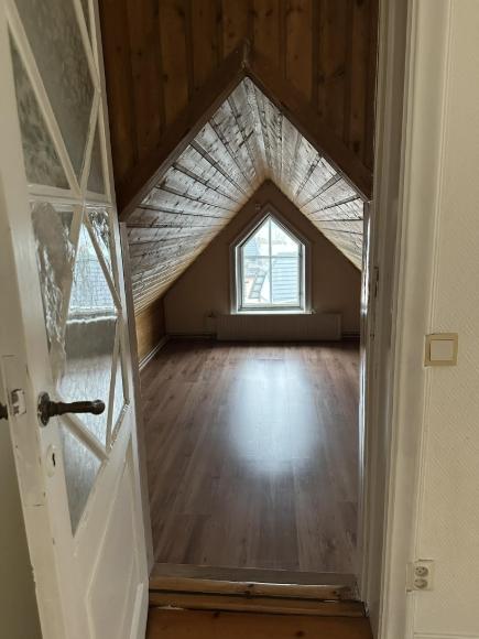 Vindslägenhet centrala Dalarö. Nära till restauranger, livsmedelsbutik, busshållplats, vårdcentral m m. Även nära till badplats med fina sandstränder. Eftersom detta är en vindslägenhet förekommer snedtak i flera rum. Totalt finns 2,5 rum med snedtak, varav ett mindre rum kan användas som förråd eller förvaring (se bilder).