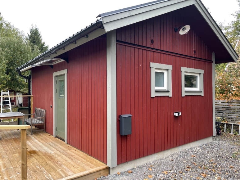 En Bohlundaren i Tyresö strand med naturen runt hörnet och 5 min promenad till busshållplatsen med snabbussar till stan.