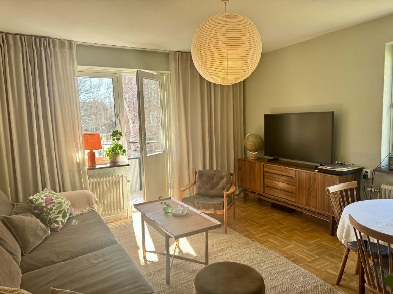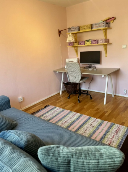 3:a i Råsunda/Solna med privat parkering På grund av resa så kommer vi att hyra ut vår ljusa och välplanerade 3:a i Råsunda/Solna under perioden 1 augusti – 31 december 2026. Lägenheten har privat parkeringsplats, två badrum och balkong. Bostaden hyrs ut möblerad, men vi kan vid behov plocka undan bäddsoffan i ett av sovrummen. Lägenheten består av tre rymliga rum: Ett sovrum med tillhörande toalett Ett rum som fungerar som sovrum/kontor/gästrum med bäddsoffa (160 cm) Ett vardagsrum med matplats och utgång till balkong Utöver detta finns ett separat kök med matplats, ett större badrum, ett mindre badrum samt förvaringsmöjligheter i klädkammare. Läget är mycket bra med närhet till Mall of Scandinavia, Strawberry Arena, naturreservat samt både pendeltåg, tunnelbana eller buss till centrala Stockholm. Privata tillhörigheter så som köksassistent mm som finns på bilderna kommer plockas bort. Hör gärna av er om ni har några funderingar. Hoppas ni finner vår lägenhet intressant. Ted och Nora.