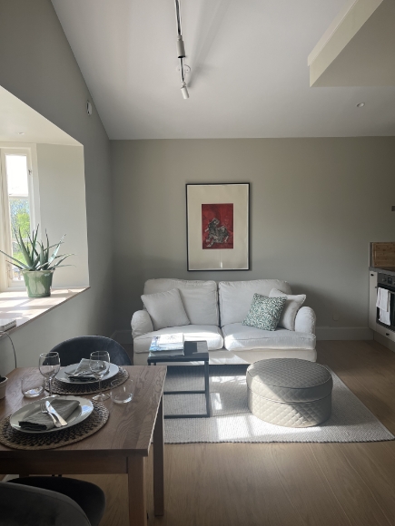 Ett nyproducerat boende i fristående hus med hög standard. 3,6 i takhöjd. Resturang och butiker 100 m från bostaden. Naturreservat och badplats på gångavstånd. Lägenheten är 25m2 med 6m2 sovloft.. SL Bussförbindelser ca 100 m som tar dig till Märsta centrum. Där finns pendeltåg/SJ tåg till Stockholms central eller bussar till Arlanda. Bra förvaring med 2 större garderober och en längre byrå med skåp och lådor. Fullt möblerad och all köksutrustning finns. Egen tvättstuga med Tvätt och tork i i samma byggnad. Fina naturområden med slottsparken intill knuten gör det till ett mysigt område att promenera i. Sommartid finns Steningebadet och man kan även titta in på Steningevik och ta en afternoon tea på helgen. Ligger i ett lugnt och säkert område.