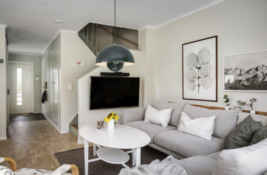 Modernt och barnvänligt radhus med tre sovrum och uteplatser med sol från morgon - eftermiddag. Nära hav, natur och kommunikationer till stan.