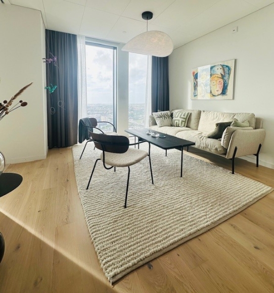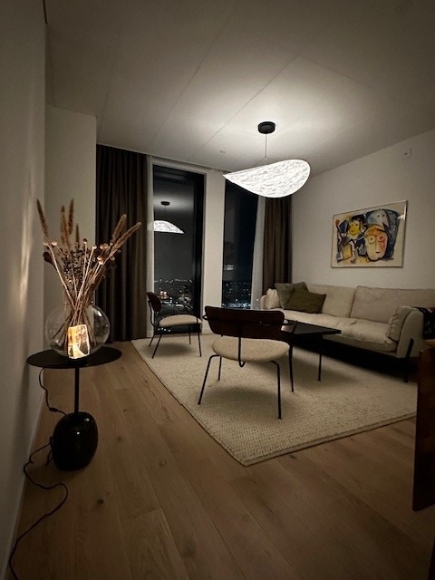 Spektakulär 2:a på våning 31 i Karlatornet – Utsikt över hamninloppet och magiska solnedgångar Välkommen till en unik tvåa på våning 31 i Karlatornet, Nordens högsta byggnad och Göteborgs nya landmärke. Här bor du på 50 kvm i ett nyproducerat och exklusivt boende med slående utsikt över hamninloppet och fantastiska solnedgångar – en vy som imponerar varje dag. Den öppna planlösningen mellan kök och vardagsrum skapar en ljus och luftig atmosfär. Köket är modernt och fullt utrustat med kvalitativa vitvaror och goda arbetsytor. Det ljusa vardagsrummet erbjuder plats för både matgrupp och sällskaps del, perfekt för umgänge och avkoppling. Från det mysiga sovrummet har du utgång till en mindre balkong. Bostaden erbjuder utmärkta förvaringsmöjligheter, med bra garderobslösningar i hallen och en rymlig walk-in-closet som ger gott om plats för kläder och förvaring. Det helkaklade badrummet är utrustat med dusch, tvättmaskin och torktumlare. Genomgående parkettgolv och vitmålade väggar ger bostaden en modern och harmonisk känsla. Bostaden hyrs ut möblerad i 12 månader. I hyran ingår värme, vatten, el, och gymkort. Som boende har du tillgång till gemensam biorum, konferensrum, takterrass, kök och festlokal – perfekta utrymmen för sociala tillställningar eller en stunds avkoppling med utsikt över staden. Här bor du med närhet till stadens puls, restauranger, service och kommunikationer – samtidigt som du har grönområden och promenadstråk inom gångavstånd. Rök- och djurfritt boende.
