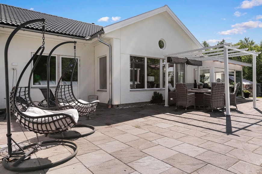 Fristående villa i lugnt område. Pool, 2 st bastu, plan lättskött tomt som är insynsskyddad. Ett premium hus med bra sociala utrymmen och en härlig atmosfär. Barnvänligt område med närhet till natur. Huset byggt i betong 2017 och har en fantastisk inomhusmiljö både sommar och vinter.
