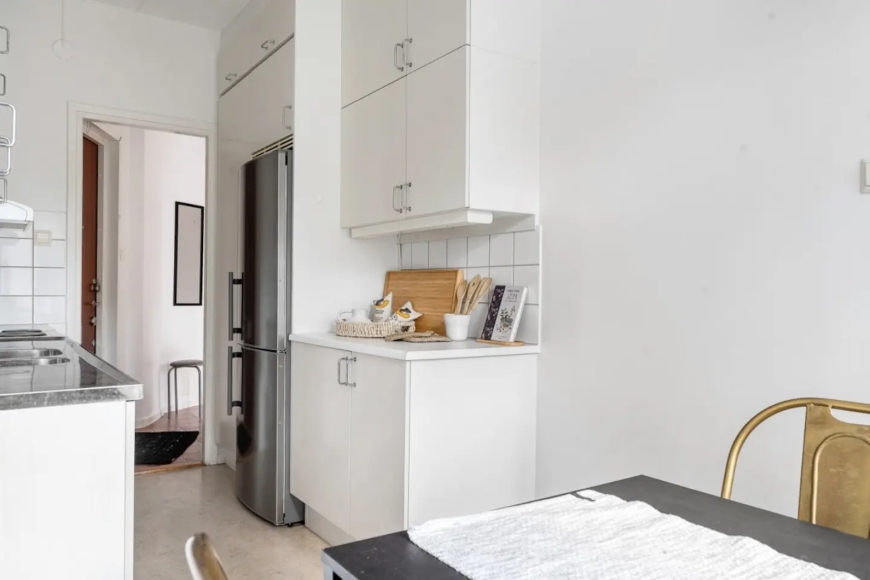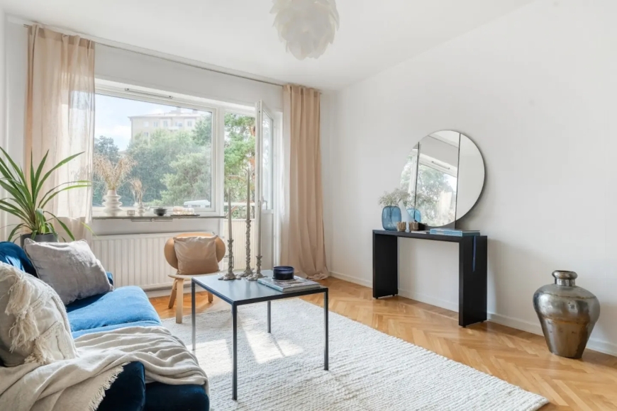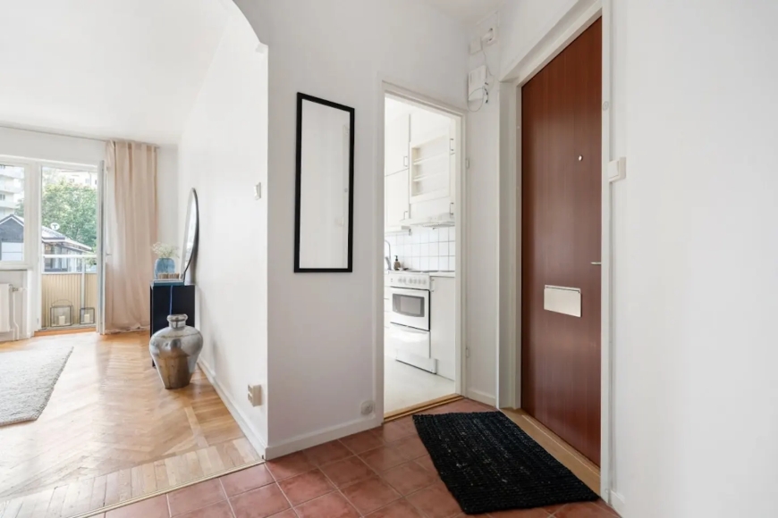 Välkommen till denna ljusa, genomgående trea som erbjuder generösa umgängesytor med charmig, dekorativ eldstad och en solig balkong i fritt söderläge. Det sociala allrummet har gott om plats för både soffa och matbord, vilket gör det perfekt för härliga sammankomster. Det stora fönsterpartiet släpper in ett fantastiskt ljus och leder ut till den soliga balkongen – en oas för avkoppling. Master bedroom har plats för en dubbelsäng och smart förvaring, medan det intilliggande sovrummet är perfekt som gästrum eller arbetsutrymme. Båda rummen ligger i ett lugnt läge mot fastighetens gårdssida, vilket skapar en fridfull atmosfär. Det snickeribyggda Köket är stilrent och harmoniserar med den genomgående färgskalan. Här finner du en exklusiv arbetsbänk i silestone, känt för sin hållbarhet, hygieniska egenskaper och estetiska skönhet. Köket är fullt utrustat och erbjuder allt du kan önska dig för att göra matlagningen till en inspirerande upplevelse. Det eleganta badrummet är klätt med kakel och klinkers från Bricmate, medan hallen erbjuder praktisk, platsbyggd förvaring. Golvet pryds av Kährs Ekparkett Taranto, och väggarna är smakfullt målade i en varm, trendig greige nyans. Bostaden kännetecknas av hög kvalitet i både anpassning och snickerier, och belysningen kan enkelt styras med Plejd för att skapa den perfekta atmosfären. Tänk dig att flytta in i en topprenoverad lägenhet med en dekorativ eldstad som bidrar till en mysig stämning – bekymmersfritt och inspirerande!