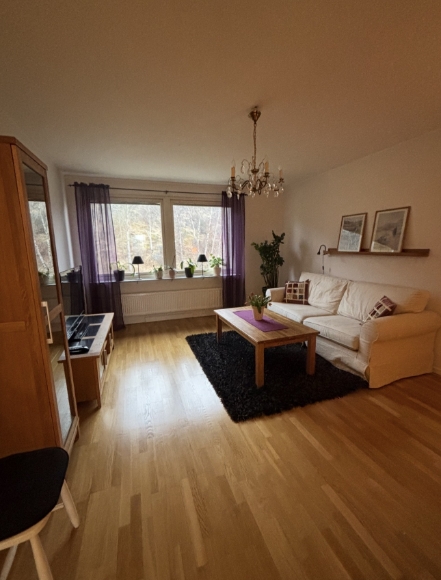Rymlig möblerad 2:a i Mölndal 68 m2, 3 trappor upp i BRF Balkong i söderläge Kök: diskmaskin, mikro, kyl, frys och spis Badrum: Dusch, tvättmaskin, handdukstork Vardagsrum med TV-apparat Område: Bifrost, nära naturen och Änggårdsbergen samt nära till skola och Pedagogen Park med affärer, restauranger och service Buss: 18 minuter till Valand, 14 minuter till Chalmers 13 TV kanaler ingår från ComHem Internet kommer framåt sommaren ingå i hyran Egen parkering går att få för 275 kr/månad El ingår ej Krav: Skötsam, rök- och djurfri, med referenser Föreningsstyrelsens godkännande krävs Tillträde snarast, uthyres 1 år