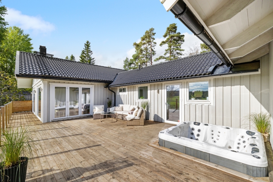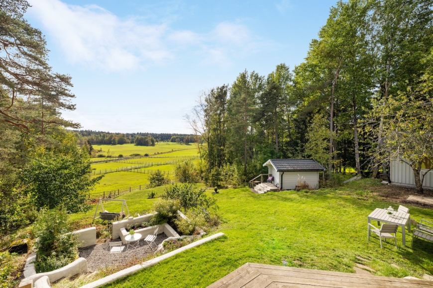 Modern villa med stor terass i söderläge och fantastisk utsikt över hästhagar. Här bor du granne med Tyresta naturreservat och kan vandra längs sjöarna på sörmlandsleden eller ta bilen till centrala Stockholm på 25 minuter. Kök och vardagsrum med öppen planlösning och öppet upp till nock. Hela huset har golvvärme. I vardagsrummet finns en stor vattenmantlad braskamin. Huset har 4 sovrum och en täljstenskamin finns även i sovrumsdelen av huset. Loft finns som extra tv-rum. Och en extra hall som idag fungerar som arbetsrum med utsikt över hästhagarna. Två badrum. Stor hall. Klädrum/förvaring. Huset är välisolerat. Tomten är inhägnad och har 3-4 parkeringsplatser. Hyresperiod minst 8 månader eller enligt ök.