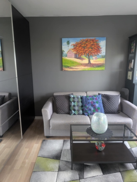 Jag hyr ut en lägenhet på 7:e våningen med en fantastisk utsikt mot centrum av Kallhäll och mot Mälaren. Den består av ett kök med diskmaskin, separat från vardagsrummet, samt ett litet sovrum med en 120-säng, men det går att få plats med en 140-säng. Det finns två stora garderober. Badrummet är relativt nytt. Bra standard. Det tar 10 minuter att promenera till tågstationen, men det finns också bussar 2 minuter bort till fots. Förrådet är inte tillgängligt men man kan hyra ett extra i föreningen. Det finns även möjlighet att betala extra för parkeringsplats. I föreningen finns festlokalen, Hobbyrum, pingis rum cykel rum, grillplats. Jag hyr ut på grund av arbete i en annan stad. Max två personer.