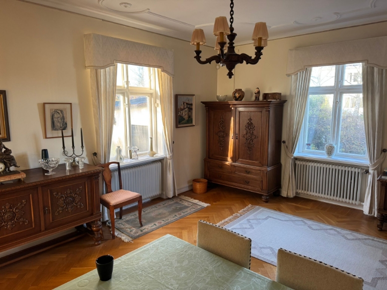 Charmig villa från 1928 uthyres i centrala Malmö – Västervång Nu finns möjlighet att hyra en unik villa från 1928 på ca 150 m² i två plan, belägen i omtyckta Västervång. Huset har en äldre men välbevarad standard och bjuder på massor av charm, såsom generös takhöjd, vackra stukaturer, spröjsade fönster och tidstypiska detaljer som skapar en varm och karakteristisk boendemiljö. Bostaden hyrs ut fullt möblerad, inklusive komplett köksutrustning, vilket gör inflyttningen enkel och smidig. Ett perfekt boende för dig som söker något charmigt, personligt och centralt — med gott om utrymme och en atmosfär som är svår att hitta idag. Vid intresse – vänligen skriv och berätta kort om dig själv! Finns källare tillgängligt, vi kommer behålla lite privata flyttkartonger i ett privat låst rum. Information om bostaden • Ca 150 m² fördelat på två plan • Byggår 1928 • Äldre standard med bevarade originaldetaljer • Högt i tak, stukatur, lister och spröjsade fönster • Fullt möblerad + köksutrustning • TV finns Kök & badrum • Köket är i original från 1970-talet. Det har en äldre standard men är fullt fungerande och utrustat med nödvändigheter, förutom diskmaskin. • Tvättmaskin finns i källaren. • Entréplan: mindre gästtoalett. • Övre plan: badrum från 1980-talet med äldre, men funktionell standard och duschkabin. Övrigt • Fin, lummig trädgård som gärna får tas om hand av hyresgästen • Närhet till vatten, grönområden och lätt cykelväg till centrala Malmö Uthyrningsvillkor • Uthyres till skötsamma personer, gärna studenter • Inga fester – lugnt och respektfullt boende uppskattas • Rökning och husdjur ej tillåtet • Uthyrning fram till maj eller juni, med möjlighet att hyra igen till hösten • Egen hemförsäkring krävs