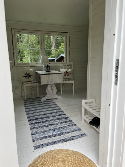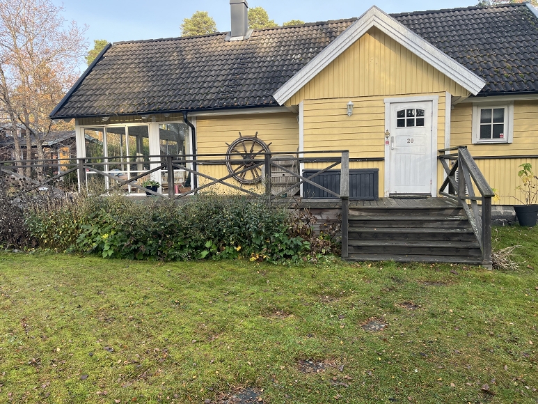 Härligt sjönära hus på Bullandö med sol hela dagen och vacker sjöutsikt. Huset på ca 75 kvm har ett stort sovrum och ett ordentligt sovloft med gott om plats. Öppet kök i anslutning till matplats och vardagsrum. Här finns även braskamin. Utanför huset njuter man av solen vid den stora altanen som delvis är inbyggd. Där njuter vi hela dagen året runt. På tomten (1 650 kvm) så finns ett gästhus så att gäster och ungdomar bitvis kan rå om sig själva. Gäststugan på ca 30 kvm består av två sovrum, kök och toalett samt utomhusdusch samt egen altan. Det är en solig tomt bestående av mjuka klippor, plana gräsytor, plommon-, päron- och körsbärsträd. Parkeringsplats för 2-3 bilar. Inom ca 10 minuters promenad finns Bullandö Marina med restaurang och mataffär, glassfabrik samt andra butiker. Sandstrand och tennisbana finns också i närheten. Till Bullandö tar man sig enkelt med bil, båt eller buss. SL kör kontinuerligt hela dagen buss in till Slussen. Tillgängligheten är god året om. Mindre husdjur inga problem, men inte skällande hundar eller kamphundar. Rökning endast utomhus.