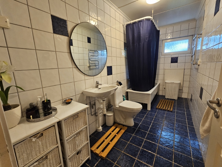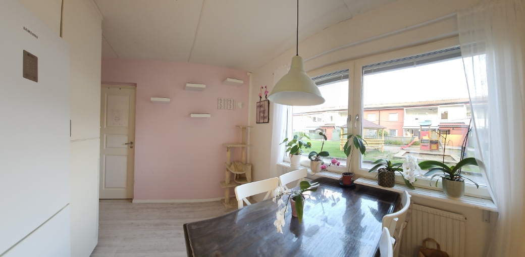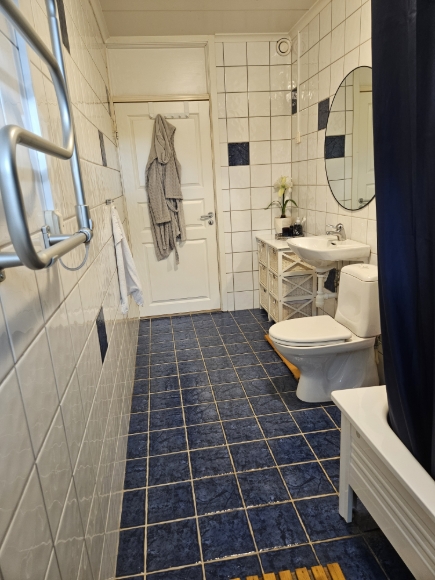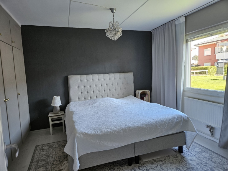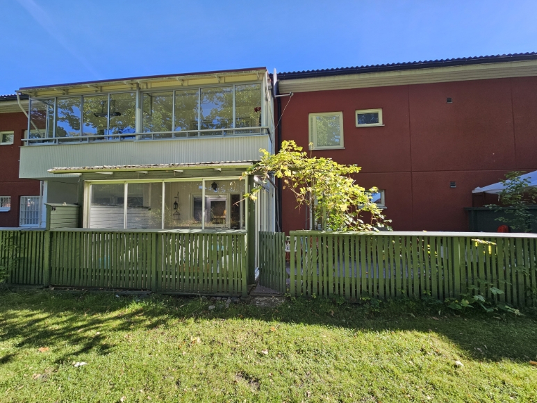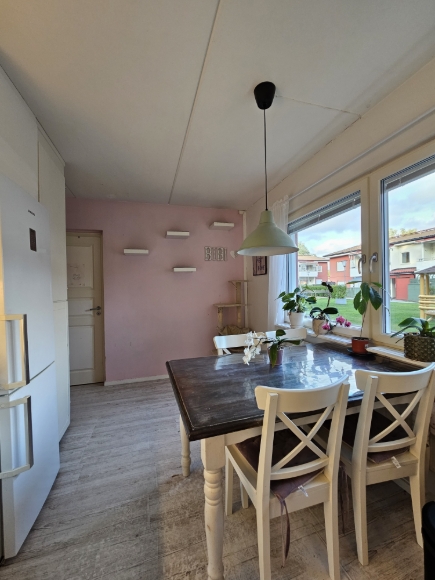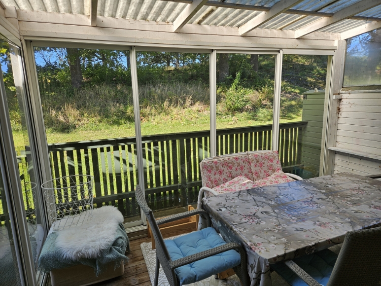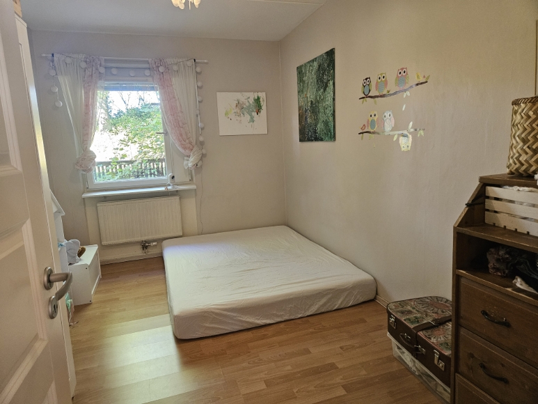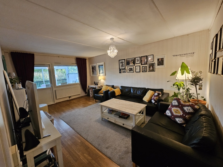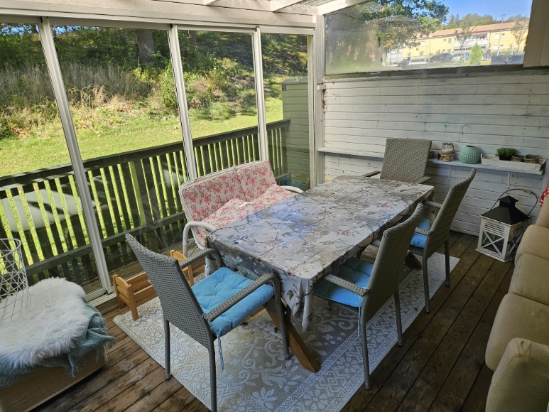Vi hyr ut en trea. 1 vardagsrummet och 2 sovrum. 1 badrum, samt en liten toalett. Vi har en inglasad altan med uteplats med en dunge som utsikt.