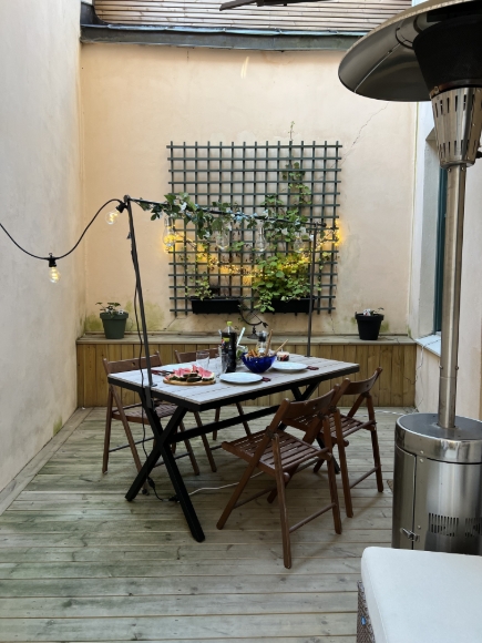 Det är en väldigt ljus och trevlig sekelskiftets lägenhet i centrala Göteborg. Det finns en stor och rymlig terrass som tillhör lägenheten. Innergården är mysig och lugn och kallas därför för italienska gränden. Det är enkelt att ta sig in och ut från Göteborg då det ligger nära påfart till motorväg. Parkering finns det alltid tillgång till utanför lägenheten.