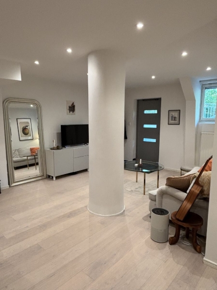 Fully renovated one-bedroom apartment of 42 square meters on the outskirts of Råsunda, next to the Mall of Scandinavia. The apartment is located in the basement but has its own entrance and patio, as well as an additional entrance to the basement and laundry room. The commuter train station is a 5-minute walk away, and it takes 7 minutes to Stockholm central. Solna center and Näckrosens subway stations are about a 15-minute walk away, and a bus that takes you directly to Odenplan is 4 minutes away. In other words, it's close to almost everything. I’m renting it out before selling in the spring. The rent includes electricity, water, heating, internet, and furniture.