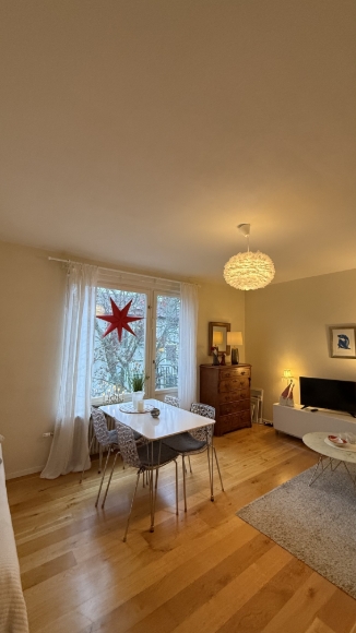 Jag söker en inneboende som är djur-och rökfri. Rummet som hyrs ut är 25 kvadratmeter stort med en egen ingång, fransk balkong & fönster i söderläge, egen toalett och en inbyggd garderob. El, internet och kabel-TV (bas-utbud) ingår. Ett eget källarförråd ingår och cykelrum finns i samma hus. Tvättstugan finns i huset bredvid. Det finns flera återvinningsstationer i föreningen och det fri datumparkering på en del gatorna i området. Lägenheten ligger i ett lugnt område, nära ett grönområde och med bra kommunikationer med tunnelbana, cykel eller bil. Det är ett gångavstånd på 5 minuter till tunnelbanan och 10 minuter till centrum med mataffär, bageri, pizzeria, apotek och blomaffär. - Rummet kan hyras ut delvis eller helt möblerat.