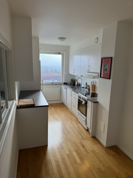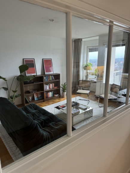 Ljus och stilren lägenhet med fantastisk utsikt En välplanerad lägenhet med stora fönster som ger ett härligt ljusinsläpp och en fin utsikt över omgivningen. Lägenheten har ett luftigt vardagsrum med parkettgolv och plats för både soffgrupp och social yta. Köket är praktiskt med gott om arbetsyta och förvaring, perfekt för både vardagsmatlagning och middagar. Sovrummet är rymligt med plats för dubbelsäng. Lägenheten har genomgående ljusa ytor och en minimalistisk stil som gör den lätt att trivas i. Perfekt för dig närhet till natur och utsikt. Bra grannar, 20 min till T centralen kommunalt, 15 min med bil.