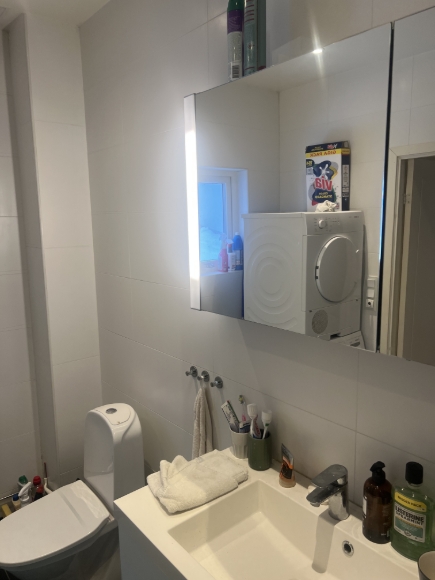 Lägenhet 60 kvm, egen ingång. Egen elmätare. Luftvärmepump. Fullstort kök och kaklat badrum med dusch, tvättpelare. Två mindre rum, tidigare hyresgäst hade dem till barnen och hade dubbelsäng i vardagsrummet. Bil behövs, bra kommunikation från pendel/buss 5 km bort ifrån adressen, pendlarparkering vid ICA, samt vid Ekskogen Roslagsbanan. Ingår fri parkering vid huset.