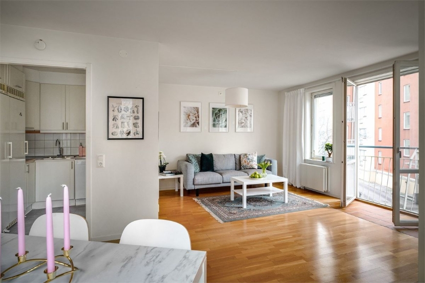 En väl avvägd tvåa, belägen i ett stillsamt, trvisamt, välskött område med innegård och omtyckt kvarter. Ljus, välplanerad lägenhet med genomgående ekparkett, inbjudande hall och luftigt vardagsrum med bred fransk balkong. Stilrent vitt kök med träfärgad bänkskiva; öppet vardagsrum/kök; Separat sovrum; Rymligt badrum med tvättmaskin/torktumlare; Förråd intill lägenheten. Uppvärmt förråd med fönster som kan användas som extra rum/hemmakontor Möblerat med full köksutrustning I hyran ingår: värme, vatten, och TV/bredband/IP-telefoni - Tele2. Ingår ej: El debiteras separat, hemförsäkring Kommunikation Utmärkta kommunikationer med kort promenadavstånd till buss och färja. Går även att hyra ett par månader!