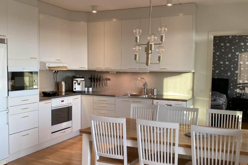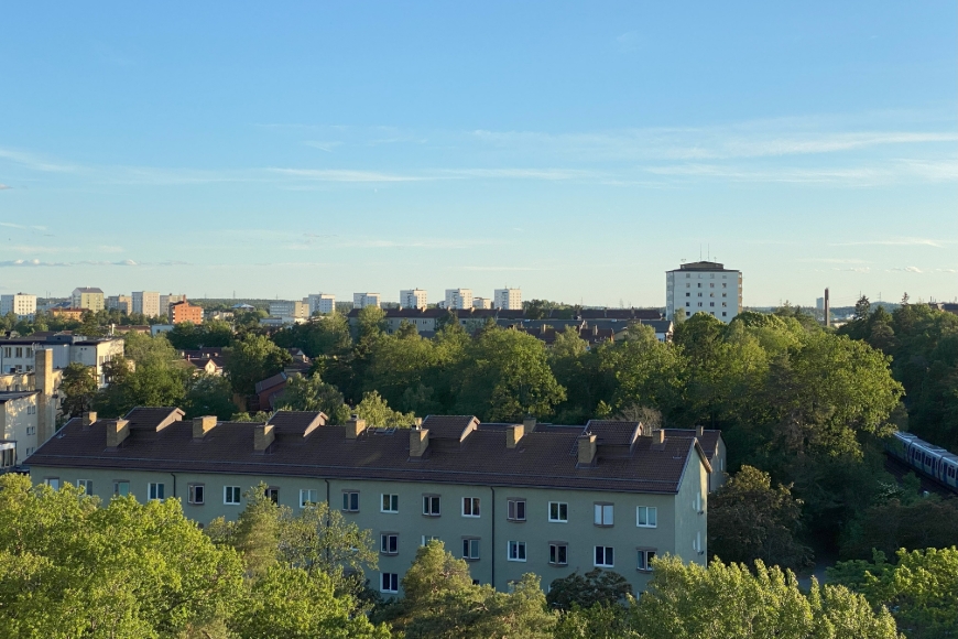 Välkommen till en ljus och välplanerad tvåa på 63 kvm med öppen planlösning och en härlig känsla av rymd. Lägenheten ligger högt upp på tionde våningen och bjuder på en fantastisk utsikt mot sydväst, som du kan njuta av från den stora inglasade balkongen. Köket är fullt utrustat och har en generös matplats med plats för upp till sex personer, vilket gör det utmärkt för middagar och umgänge. Badrummet är stort, fräscht och funktionellt med både tvättmaskin och torktumlare. Lägenheten erbjuder även mycket bra förvaring med en stor garderob i sovrummet och ytterligare en rymlig garderob i hallen. Området är lugnt och trivsamt med goda kommunikationer. Det är endast 100 meter till Hägerstensåsens tunnelbana, som tar dig till T-centralen på 15 minuter. Inom promenadavstånd finns ICA Supermarket, gym och simhall, caféer och flera restauranger. Du har dessutom nära till park och grönområden.