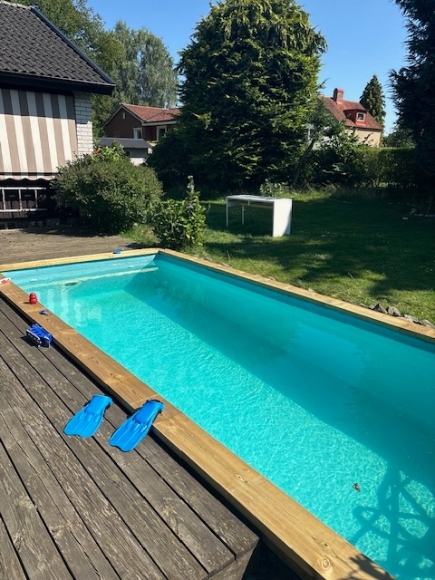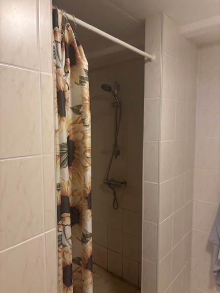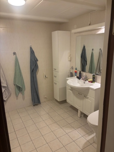 Villan är på två plan. Jag bor med barn i ovanvåningen. Nedre våningen, som är 100% självständig, hyrs ut enligt annonsen här.