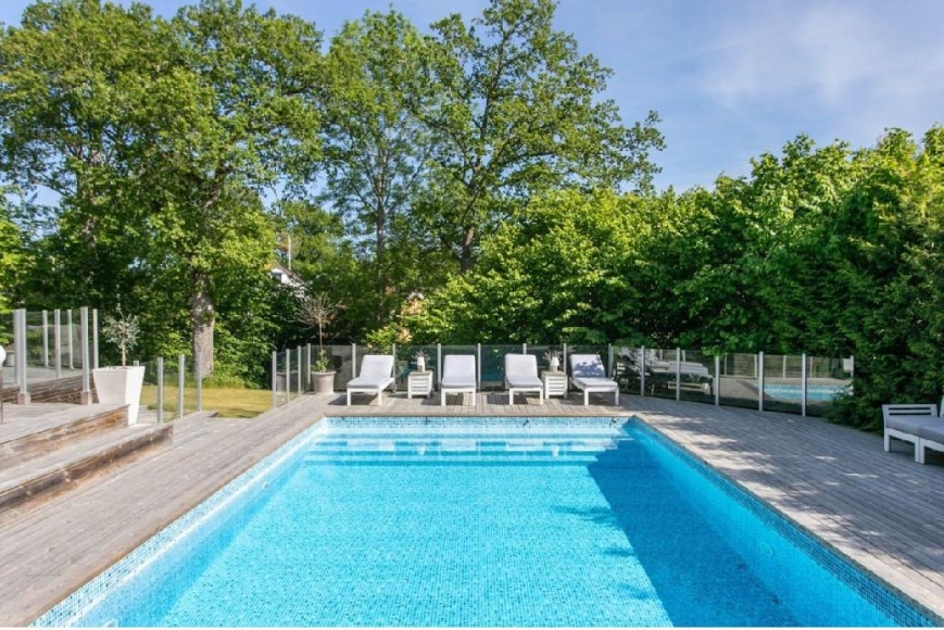 Omgiven av vacker natur och lugna villakvarter finner du denna välplanerade villa på Solsidan. Här kombineras ett av Saltsjöbadens bästa lägen med ett hem som genomgått stora och omfattande renoveringar både interiört- och exteriört. Fantastisk trädgård med stor pool och trädäck, fina stensättningar, plan gräsmatta omringad av stora vackra ekar. Tomten ligger i ett svårslaget och mycket bra solläge. Nytt garage från 2017. Huset erbjuder öppna och inbjudande sällskapsytor i entréplanet – perfekt för både vardagsliv och middagar med vänner, övre plan med många sovrum. Gångavstånd till badplatser, skolor, förskolor och kommunikationer.