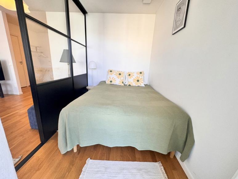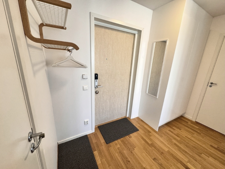 Located in the heart of Solna, this brand-new, modern studio is an ideal choice for professionals, couples, or anyone looking for a cozy, convenient living space. Whether you’re relocating, on a work assignment, or seeking a peaceful home in a vibrant neighborhood, this studio offers everything you need for a comfortable and productive stay. Key Features: Fully Furnished and Equipped: This studio is ready for you to move in. It comes complete with all the essentials, so you can feel right at home from day one. Open-Plan Living & Kitchen Area: A spacious layout with all the modern amenities you need to cook, relax, and entertain. The kitchen is fully equipped with appliances, including a stove, oven, fridge, and dishwasher. Private Sleeping Area: A separate sleeping space, divided by a stylish sliding door, ensuring privacy and a restful night’s sleep on a comfortable 140 cm-wide bed. Comfortable Living Space: The spacious living area includes a cozy sofa bed (135 cm wide), perfect for relaxing after a long day or hosting guests. Large, Modern Bathroom: Featuring a walk-in shower and a washing machine for your convenience—ideal for longer stays. Private Balcony: Step out onto your sunny balcony and enjoy a coffee or unwind with a drink while taking in charming city views. Perfect Location for Work and Leisure Situated just minutes from all the amenities you need, the apartment offers a great base for both work and relaxation: * 3-minute walk to Metro, Tram, & Bus stops, connecting you seamlessly to the city. * 5-minute walk to Solna Centrum, a vibrant area with a wide variety of shops, cafes, and supermarkets. Surrounded by top restaurants, cafes, and fitness centers, perfect for unwinding after a busy day. * 15-minute walk to Friends Arena and Mall of Scandinavia, offering endless shopping, entertainment, and dining options. * 12-minute walk to the train station with direct connections to Arlanda Airport, making travel a breeze. Additional Amenities: Fast Wi-Fi: Perfect for remote work or video calls. Security: The apartment is located in a well-maintained building with secure entry, providing peace of mind during your stay.
