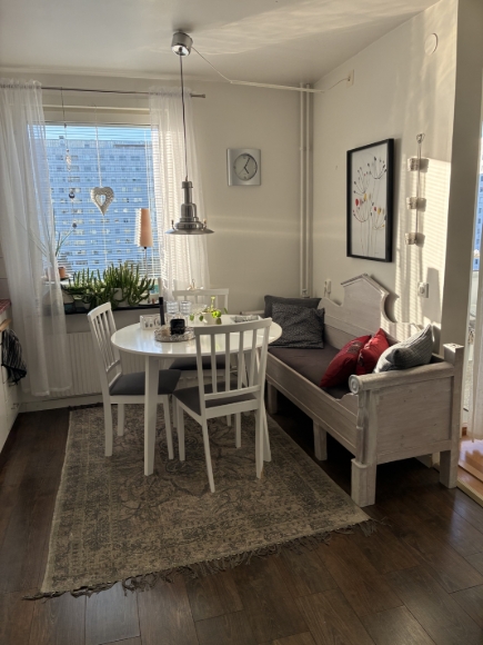 Fin lägenhet med bra planlösning. Nytt golv i kök och hall, säkerhetsdörr, inglasad balkong. Toalett med dusch och tvättmaskin är stambytt 2024. El samt varmvatten brukar uppgå till ca 400 kr vardera i kvartalet. Finns tv med basutbud, samt Netflix. Gångavstånd till Solna Centrum , till tunnelbanan, pendelstation samt tvärbana. Gångavstånd till Friends Arena och Mall of Scandinavium. Bostaden hyrs med ett år med chans till förlängning.