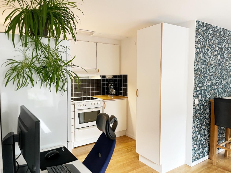 Stor etta på 47 kvadrat med bra planlösning i Johannelund i en fin omgivning med skogsdungar. Lägenheten är belägen på bottenvåningen med fint ljusinsläpp, en fransk balkong i vardagsrummet samt en perfekt sovalkov som rymmer en 120-säng. Nyrenoverad 2012 med genomgående fint ekparkettgolv och helkaklat badrum med dusch och förberett för tvättmaskin om så önskas. Ommålning har gjorts under 2025 och kompletterats med två fondväggar prydda med Stig Lindbergs motiv Herbarium. En trappa ner i källaren finns tillgång till praktisk tvättstuga och bastu. I övrigt finns gemensamma utrymmen i form av gym, samlingslokal och hobbyrum. Till Universitet tar du dig med cykel på 25 minuter och till Universitetssjukhuset på 10 minuter ca. Med närhet tilI Johannelunds centrum finns det mesta du behöver med lokal mathandel, pizzeria och dessutom närhet till volleybollplan och bad nere i Stångån vid Johannelundsbadet.