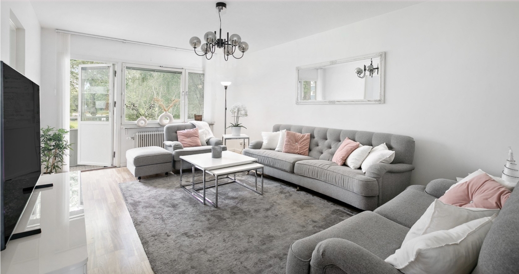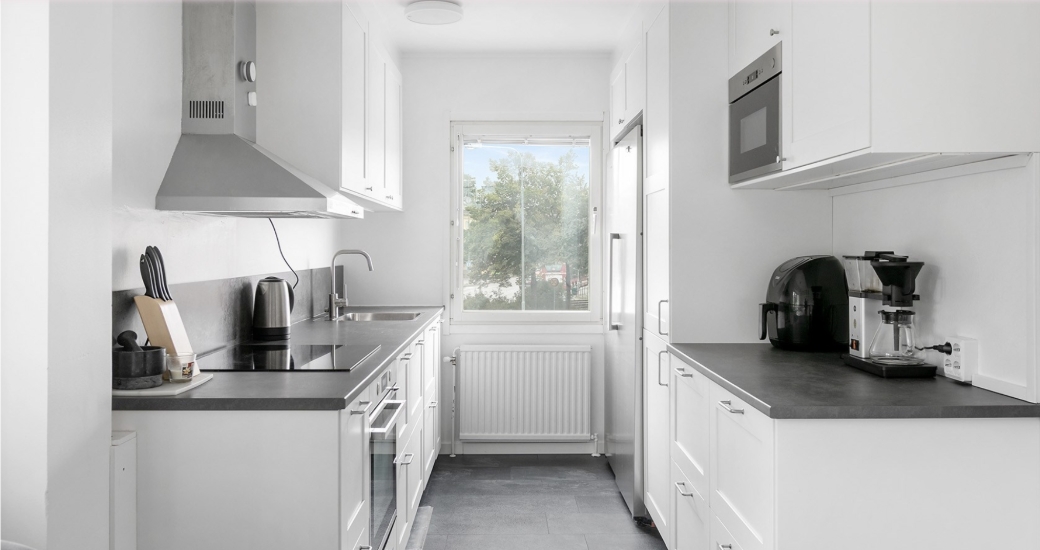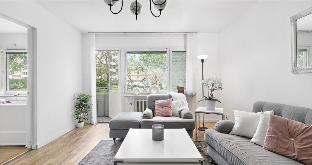Modernt och stilrent kök med vita profilerade köksluckor och fint stänkskydd ovanför de generösa arbetsytorna – en trivsam design som håller över tid. Utrustningen består av spishäll, ugn, spisfläkt, inbyggd mikrovågsugn, kyl och frys. Vardagsrummet är mycket väl tilltaget i storlek med ett härligt ljusinsläpp från stora fönsterpartier. Från vardagsrummet nås den mysiga balkongen i sydost läge. Här njuter ni både av solens strålar samt en lummig utsikt över den gemensamma gården. Vidare interiört finns det två rymliga sovrum som är harmoniskt inredda. För kläd förvaring finns det platsbyggda garderober. Fräscht och helkaklat badrum med golvvärme som är praktiskt beläget i hallen. Utrustningen består av toalett, duschhörna, spegelskåp och handfat med kommod. För högsta komfort finns även en tvättmaskin installerad. Hyrs ut i 6 månader med chans till förlängning. Bostaden är delvis möblerad men kan hyras ut omöblerad vid önskemål.