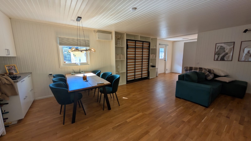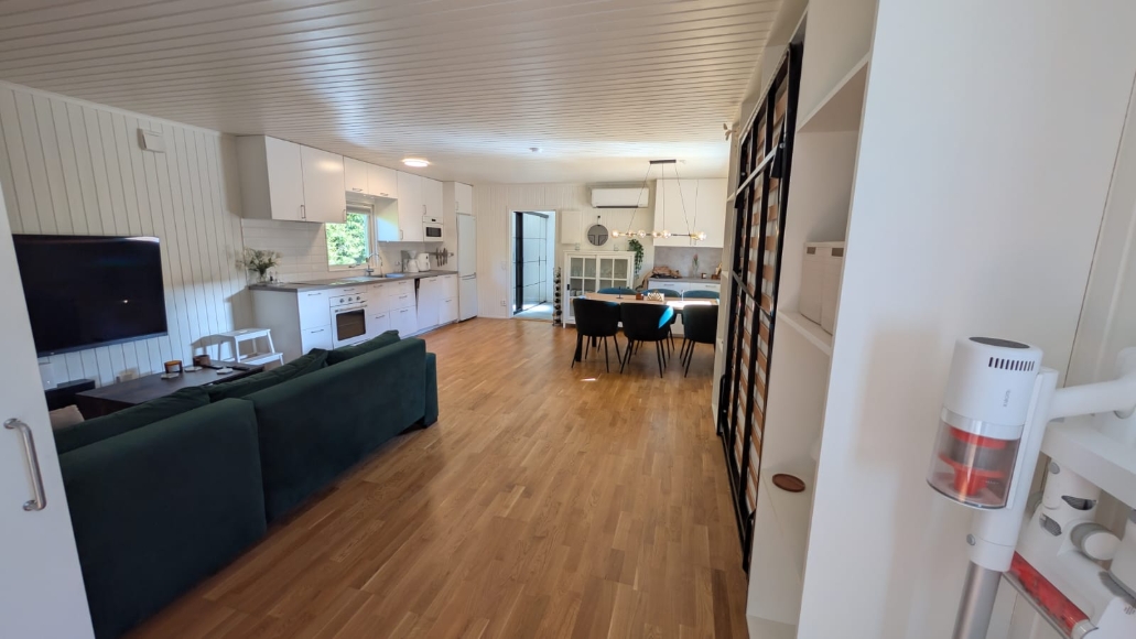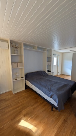Modernt enplanshus på 60 kvm med hög standard Välplanerat och stilrent enplanshus som kombinerar funktionell design med hög trivselfaktor. Här bor du på 60 välnyttjade kvadratmeter med moderna bekvämligheter och ett lugnt läge. Boendet i korthet: Yta: 60 kvm i ett plan. Kök: Stort och rymligt kök med modern standard och goda arbetsytor. Vardagsrum: Luftigt med TV-anslutning och bra ljusinsläpp. Hall: Välkomnande hall med installerad golvvärme. Klädvård: Bekväm vardag med separat tvättmaskin och torktumlare. 160 Säng (Murphy bed, höj och sänkbar). Värme: Effektiv uppvärmning via luftvärmepump samt golvvärme. Avkoppling: Tillgång till vedeldad bastu. Parkering: Parkeringsplats ingår, med möjlighet att ladda elbil. Kommunikationer: Gångavstånd till Roslagsbanan (ca 45 min till Stockholm Östra). Bra p-möjligheter vid Ekskogens station eller pendlarparkering i Brottby för buss 676. Ingår i hyran: Hushållsel, vatten, avlopp och internet. Övrigt: Hyresgästen tecknar endast egen hemförsäkring. Vi söker rökfria hyresgäster. Om bostaden Byggnaden byggdes år 2007. Energiklass Byggnaden har energiklass A. Renoveringar Köket är nyrenoverat (0-5 år) Badrummet är renoverat (5-10 år)