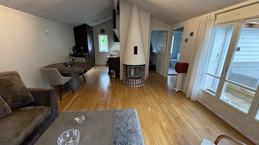 Charmig och välutrustad villa i Stava, Åkersberga Denna hemtrevliga villa kombinerar moderna bekvämligheter med lugnt läge nära naturen. Belägen på Nyponvägen, endast 5 min till Åkersberga centrum och 25 min till Stockholm city. Villan har ett sovrum, arbetsrum, kök och vardagsrum i ljus planlösning, samt en rymlig altan med sol hela dagen. Källarplanet (43 kvm) rymmer tvättstuga och gott om förvaring. Tomten är 2 300 kvm med parkeringsplats. Fristående garage ingår ej. Eget minireningsverk och borrad brunn finns. Luftkonditionering för varma dagar och öppen spis för kyliga kvällar. Passar perfekt för par som söker ett lugnt, bekvämt boende nära natur och stad.