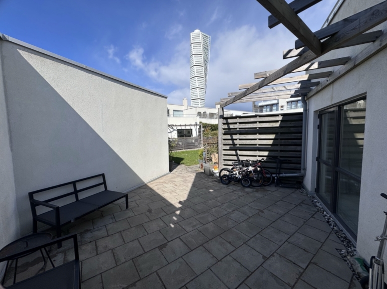 Lägenhet med egen ingång mitt i Västra Hamnen BO01. 30 meter till Sundspromenaden och Öresund med fantastiska solnedgångar - och 100 meter till närmaste plats för ett dopp i havet. Lägenheten har ett sovrum, badrum och stort kombinerat kök/vardagsrum samt uteplats med tillgång till privat område och gemensam gräsmatta. Lägenheten har stora fönster med mycket dagsljus - nytt kök installerades 2024. Närmaste mataffär är ICA Maxi 400 meter bort. Malmö Central station 2km bort (finns bus inom 400 meter)