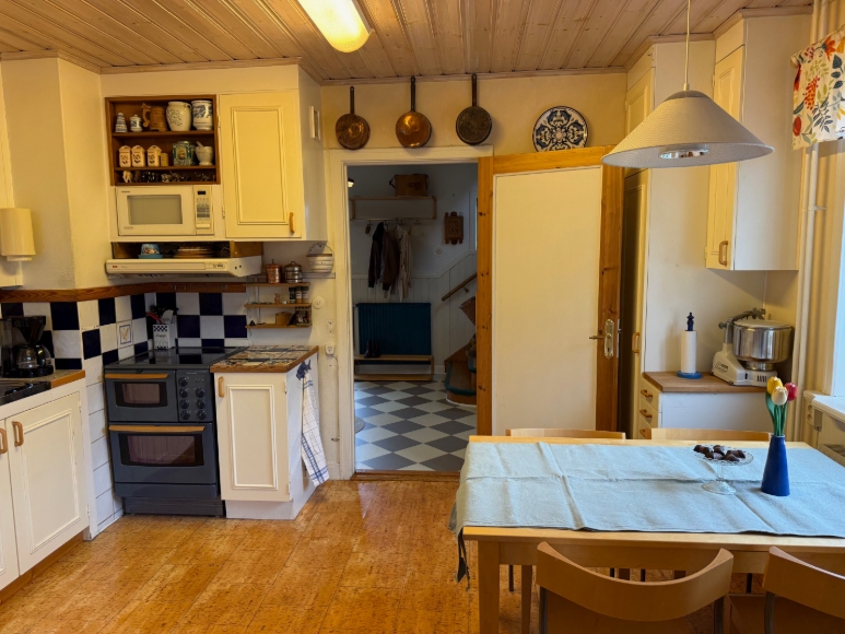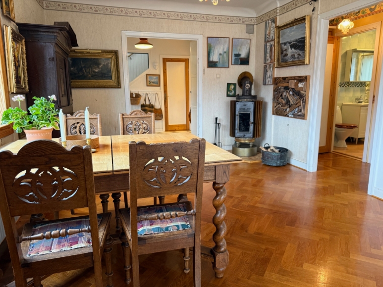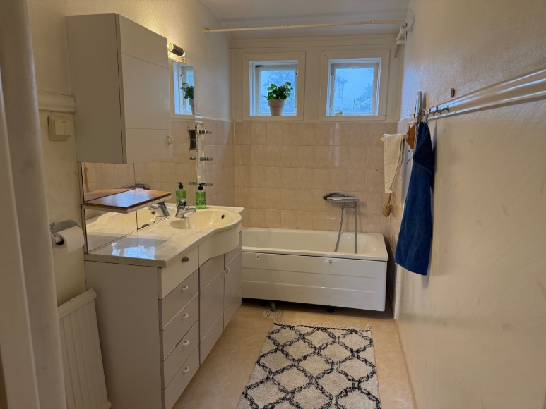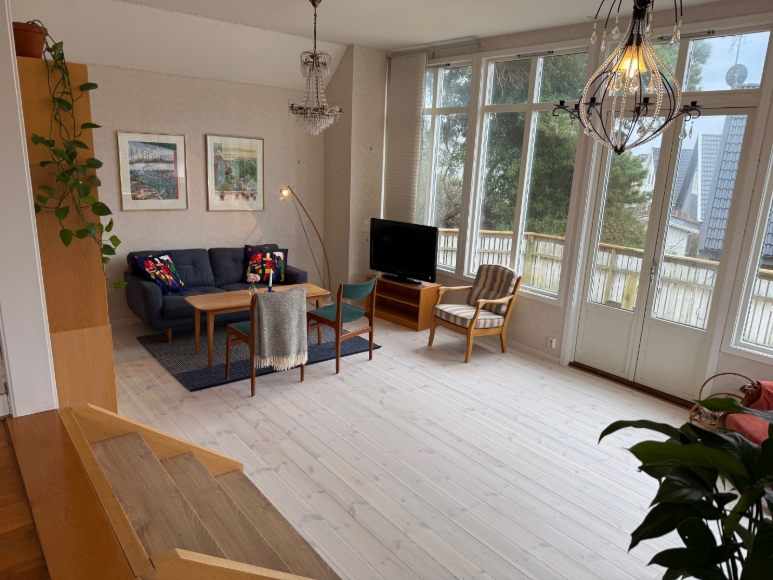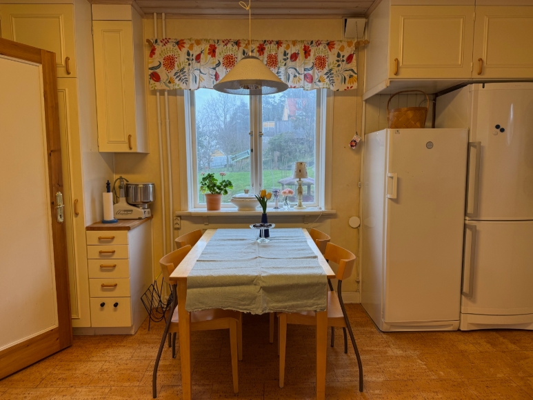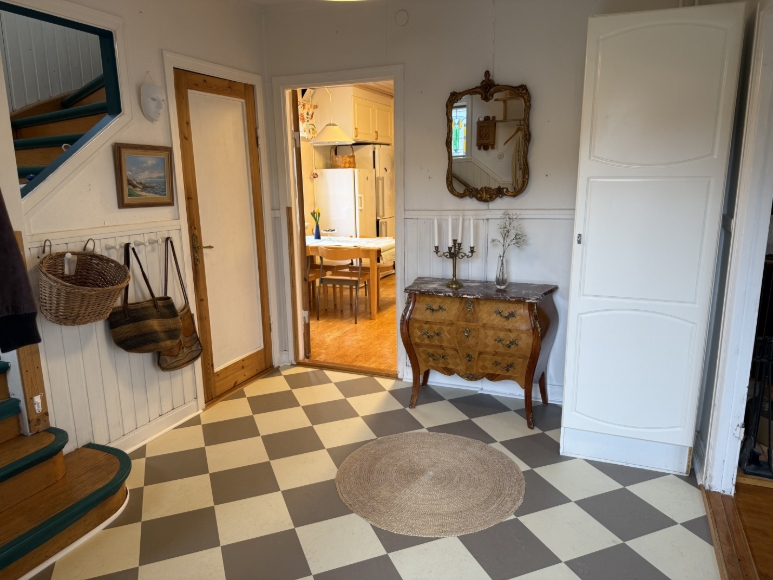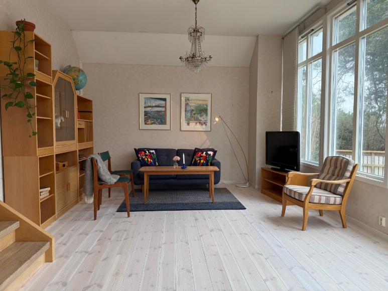Charmigt hus att hyra i Fiskebäck, Västra Frölunda Nu finns det möjlighet att hyra ett hus i lugna och trevliga Fiskebäck i västra Göteborg. Här bor du med närhet till både hav, natur och salta bad. En F-9 skola, flera förskolor samt två livsmedelsbutiker ligger på gångavstånd. Inom 10 minuter med bil finner ni även shoppingcentrumet Frölunda Torg med ett stort utbud av service, butiker och restauranger. Huset är byggt 1934 och består av två plan samt en vind. Fiber finns installerat för TV och internet. Till bostaden hör flera uteplatser så som en altan och en stor balkong i söderläge samt en mindre balkong i västerläge. Under sommaren är altanen en självklar plats för grill och utemiddagar. Parkeringsplats finns i direkt anslutning till huset. Planlösning: Entréplanet består av en hall, ett kök, ett badrum med dusch, ett sovrum samt ett vardagsrum med en fungerande kamin. Från vardagsrummet når man altanen. På övre plan finns ett mindre allrum, tre sovrum samt ett badrum med badkar. Från ett av sovrummen når man den stora balkongen. Tvättstuga med tvättmaskin och torktumlare finns i källaren. Här finns även möjlighet till cykelförvaring samt övrig förvaring. På tomten finns en trädgård med en gräsmatta och äppleträd. Huset hyrs ut delvis möblerat eller omöblerat efter önskemål. Alla möbler och inredning på bilderna ingår inte i huset. Vid önskemål om att hyra huset delvis möblerat bestäms möblemanget efter överenskommelse.