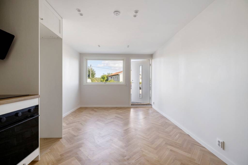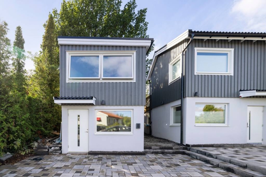 Välkommen till denna mini-villa om hela 55 kvm fördelat på 1 rymlig sovrum samt ett extra kontors-/allrum – perfekt för den moderna par/familj som vill ha både funktion och stil i vardagen. Här erbjuds ett hem där hög kvalitet, genomtänkt design och lyxiga materialval samspelar i en harmoni som måste upplevas på plats. Tack vare sin smarta planlösning och höga standard. Huset är nybyggd, vilket gör detta till ett exceptionellt bekymmersfritt boende under lång tid framöver. Nytt badrum Nytt kök med integrerade vitvaror, exklusiva detaljer, Ny golvvärme från LK Systems med individuella värmestyrningssystem i varje rum, Exklusiva materialval Redan vid första steget in möts du av en elegant fiskbensparkett som löper genom hela våningen och skapar en varm, exklusiv känsla. Blicken dras direkt till den specialtillverkade ektrappan – ett handgjort hantverk av högsta kvalitet som fungerar som både ett konstverk och ett praktiskt inslag i hemmets hjärta. Busshållsplats finns precis framför bostaden. Vi rekommenderar att du läser igenom det inför visningen för en bättre förståelse av husets skick.