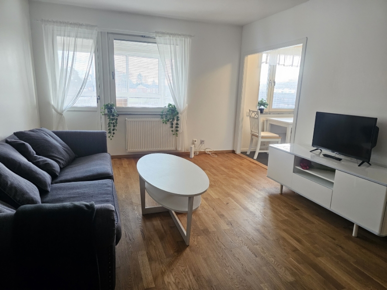 Nyrenoverad 2:a i centrala Knivsta. Ljus och fin lägenhet högst upp i äldre bostadshus. Härlig utsikt mot söder från inglasad balkong. Möjlighet till gratis bilparkering finns utanför huset. I hyran ingår el, vatten, värme, wifi, bas TV-kanaler, köksgeråd, städutrustning och möbler (enligt bilder). Gemensam tvättstuga och torkrum finns i källaren. Mindre förråd i källaren finns, ca 1,5 kvm med hyllor till tak. Bostaden ligger i ett lugnt område med gångavstånd till Knivsta station för tåg mot Sthlm och Uppsala samt lokalbussar. Nära till mataffärer som Ica Kvantum och Willys, samt gott om träningsställen: Centrum för Idrott och Kultur, Hälsohuset, STC mm. Nära till kultur (CIK) och kommunhus med bibliotek. Söker en hyresgäst som är rökfri, utan husdjur, skötsam och som visar hänsyn till grannarna.