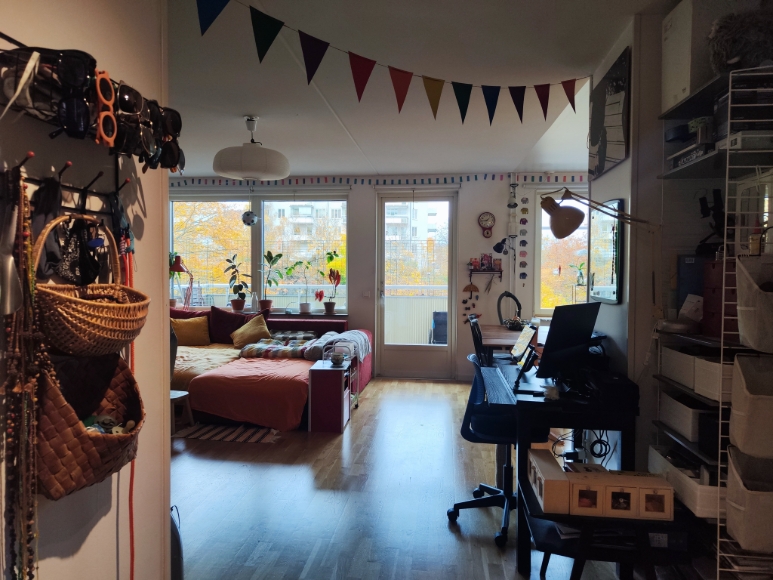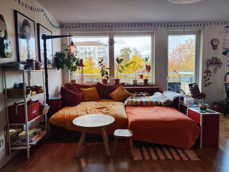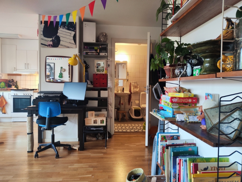 Fullt möblerad och ljus lägenhet med öppen planlösning mot väster och nära Sätra tunnelbanestation (20 minuter till T-centralen). Vi har bott här i över 11 år och vi reser i cirka sex månader, vilket är anledningen till att vi hyr ut lägenheten. Vi har saker som TV (55"), 2.1 soundbar-högtalarsystem, ett par datorskärmar (21-27"), Xbox One, matberedare, diskmaskin, köksutrustning etc. Utöver de saker som nämns i annonsen har balkongen egna möbler, som för närvarande är hopfällbara och förvarade där. Vi har en utfällbar soffa. Vi har många barnsaker och leksaker för barn under tre år. Badrummet är utrustat med tvättmaskin och torktumlare. Det finns också en gemensam tvättstuga där man kan tvätta större partier eller mattor och liknande. Lägenheten har ett förråd på cirka 8 m² invändigt. Allt som tillhandahålls fungerar, och vi kan också komma överens om vad du behöver av alla de saker vi har. Det du inte behöver flyttar vi till ett förråd. Vi har haft husdjur i huset, både katter och hundar. Vi skulle definitivt gärna visa dig platsen eftersom det är mycket viktigt för oss att vi båda är överens.