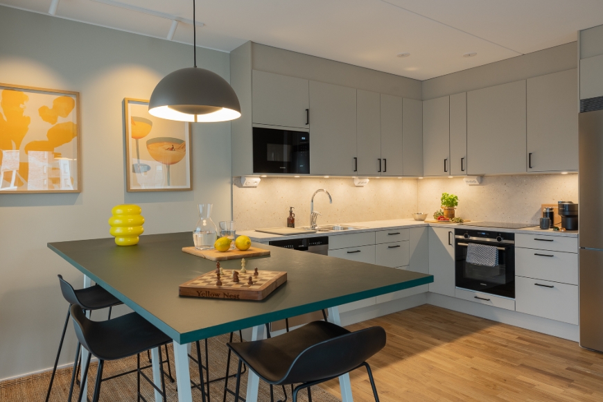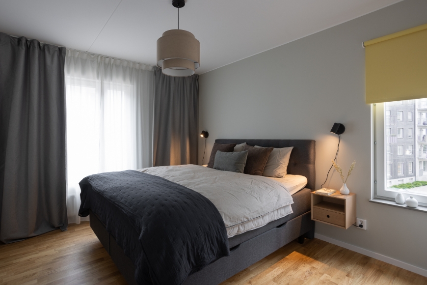 The apartment - The 2-room apartment provides guests with a large balcony to enjoy the evening sun. The modern Scandinavian interior will make you feel right at home and is equipped with everything one could wish for. - A cozy, large seating area to unwind after long days or to invite family and friends for weekend get-togethers; a flat-screen TV, a high chair, and a dining table, which is also perfect for coffeehouse working atmosphere. The living room sofa can easily be transformed into a guest bed (1,60 x 2,00). - The kitchen is fully equipped for hobby chefs and family style cooking (microwave, oven, coffee machine, kettle, kitchen tools and high quality dishes). - The light bathroom is spacious with a walk-in shower and practical to manage your weekly or daily laundry needs (washing maschine & dryer). - The master bedroom offers a soft and brand new king size bed (1,80 x 2,00m) with storage and a big closet. Black-out curtains included, as well as a fantastic seaview from the bedroom. - The hallway offers additional storage and a closet. Cleaning supplies, first aid and safety standards included. The neighbourhood & the building Limhamn and Sjöstaden are some of Malmö’s most exciting areas. Once a traditional fishing and limestone industry hub, Limhamn has transformed into a thriving waterfront district while keeping its charming small-town feel. The newly established building is one of the final pieces in this brand new and modern neighborhood. The building follows the newest real estate standard, offers storage for strollers, bicylces, has a recycling facility, and a nice backyard for children to play and neighbours to meet. Location 1.7 km from Ribersborg Beach and 5.1 km from Triangeln Shopping Centre. Malmo Arena is 5.3 km from the apartment, while University of Lund is 25 km away. Restaurants, cafés, shopping for daily needs is walking distance away. Parking permits can be registered via Malmö stad. Your landlord Yellow Nest Malmö is a home designed for expats and international professionals who are busy with their new work assignment and seek comfort when being off-work. Our apartments are fully furnished and hassle-free, which will allow you to settle in easily, explore Malmö, and plan your next steps—without long-term commitments.