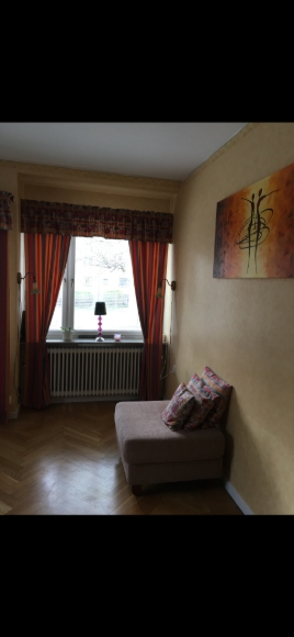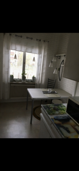 En mysig lägenhet på 57 m med öppen spis, balkong och badkar.